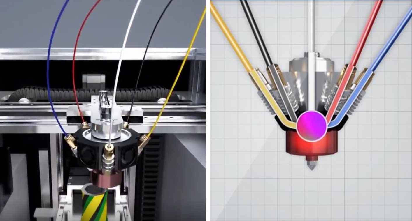 요즘 3D 프린터중에 고가의 장비들은 RGB색상 처럼 몇가지 색의 필라멘트를 섞어서 수많은 색상을 표현하거나,
