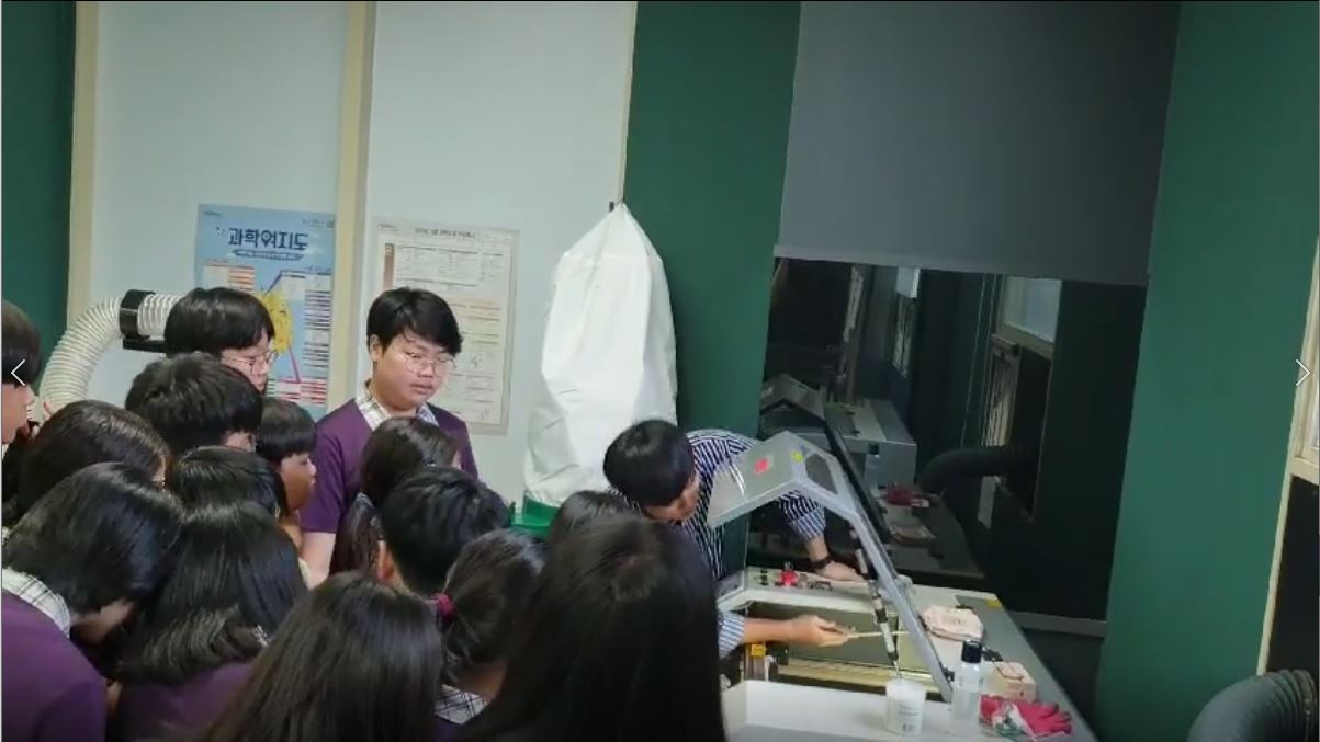 이번에는 중학교 아이들을 대상으로 하루 4시간씩 레이저커팅기 교육이 있었습니다.