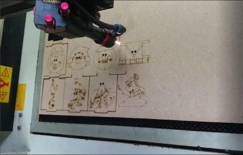 아이들이 직접 그린 그림들은 레이저커팅기를 이용하여 각인을 해줍니다~