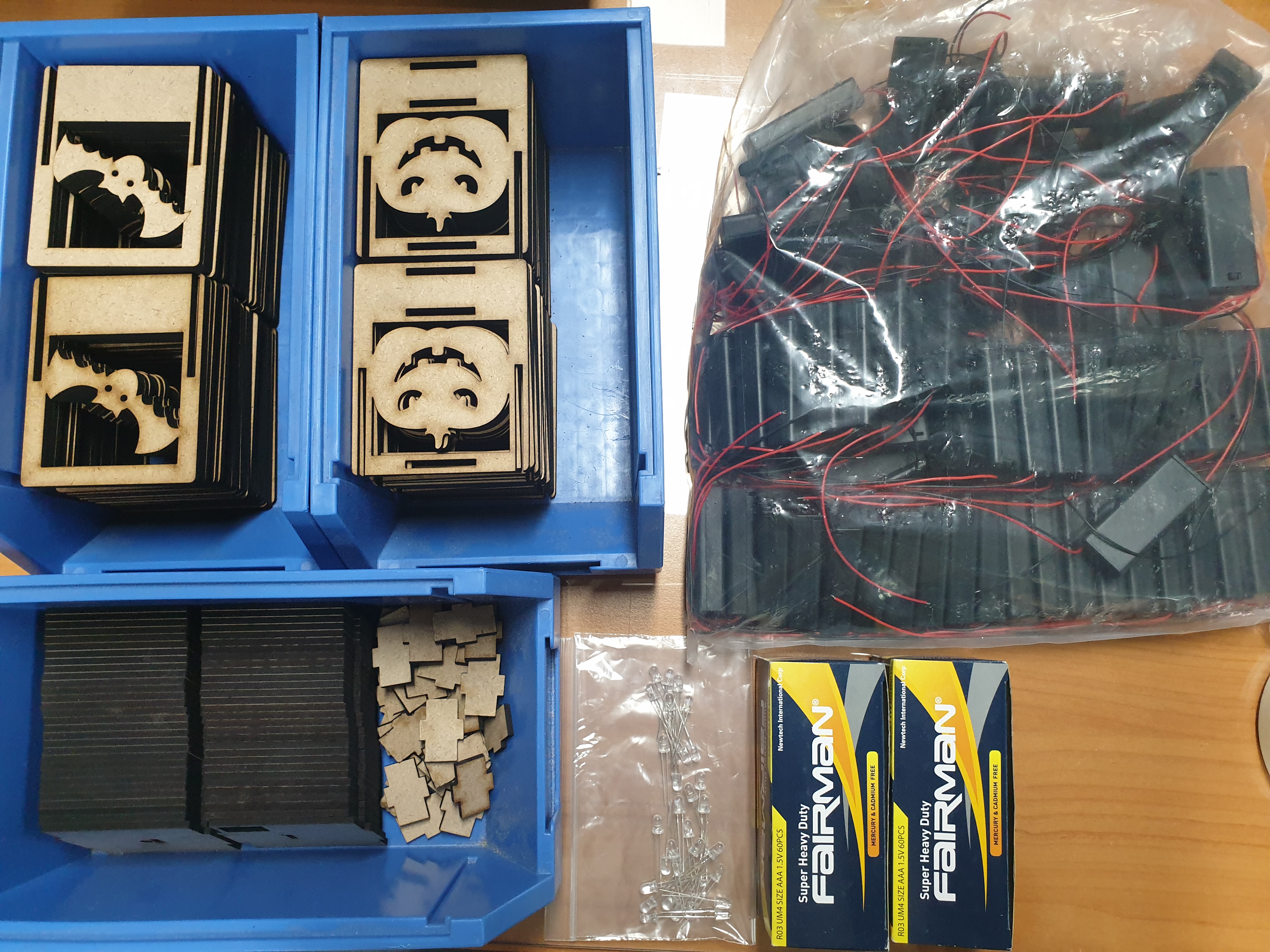 박쥐와 호박 모양의 그림 판과 LED, AAA배터리, 배터리 홀더를 이용하였습니다.