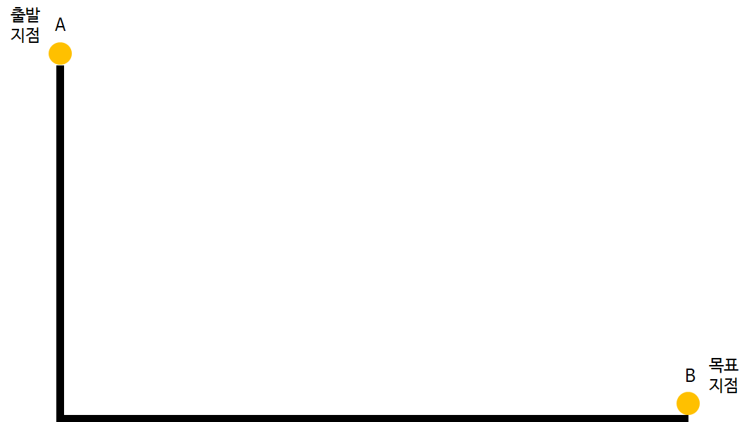 "문 제" : 다음에서 출발지점 A에서 목표지정 B까지 가장 빠르게 떨어지는 방법은??
