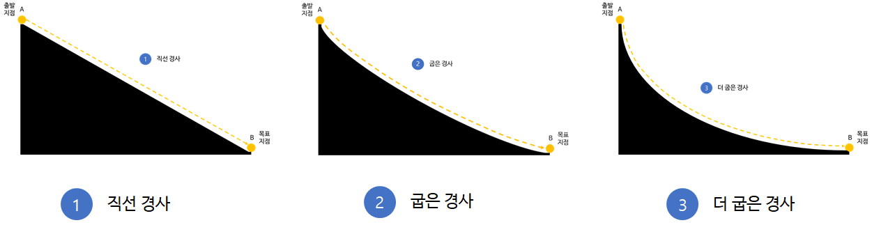이 경로를 따라 물체가 이동을하게 되면 가장 빠른 시간내에