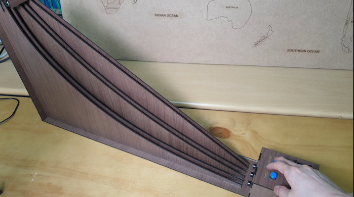 레이저커팅기를 활용하여 구슬이 굴러오는곡선을 만들고,
