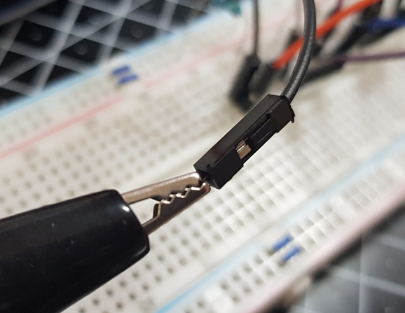 각 점퍼선 마지막 부분에 악어 클립을 연결해주시면 됩니다.
