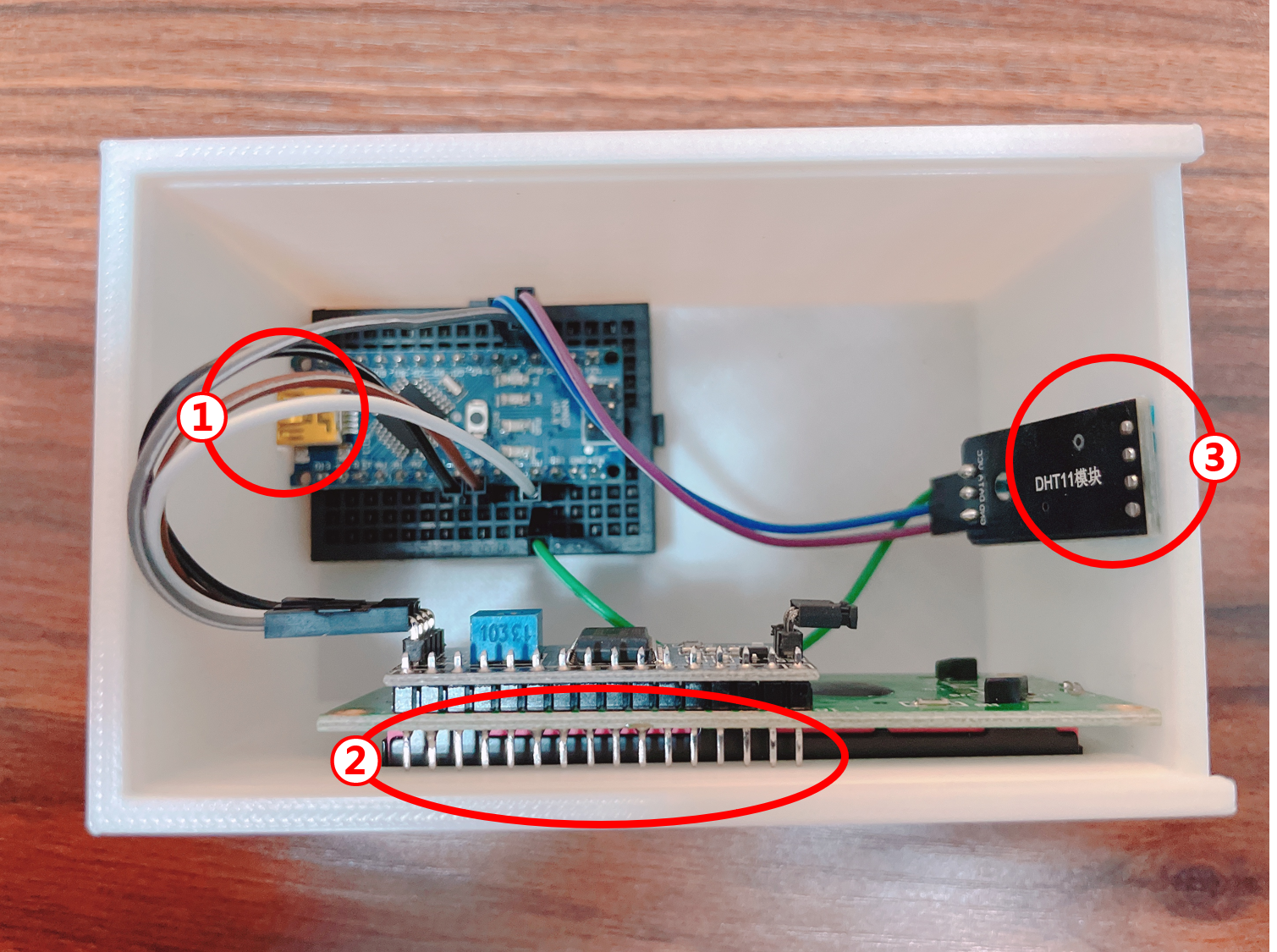 - 3D프린터로 출력된 온습도계 케이스에 잘 맞춰서 조립해 줍니다.