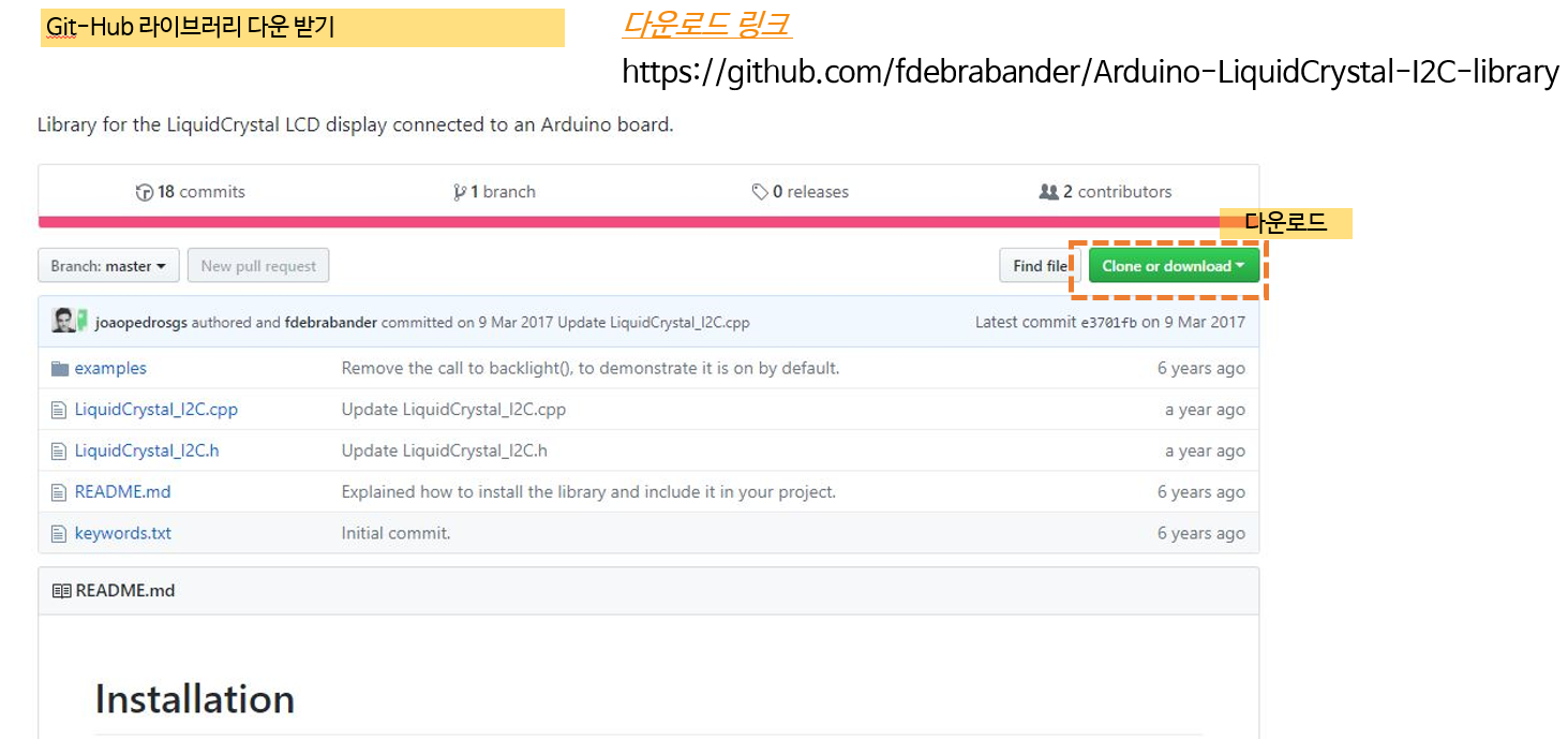 우선 아래의 사이트에서 LCD 라이브러리를 다운받아주세요.